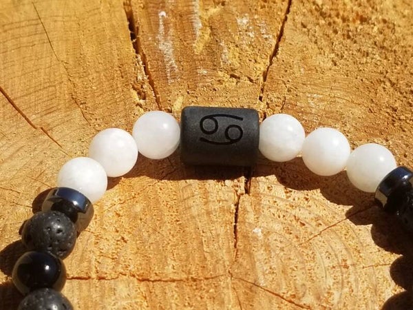 Bracelet pierre de lave, agate noire & pierre de lune pour les natifs du signe du cancer