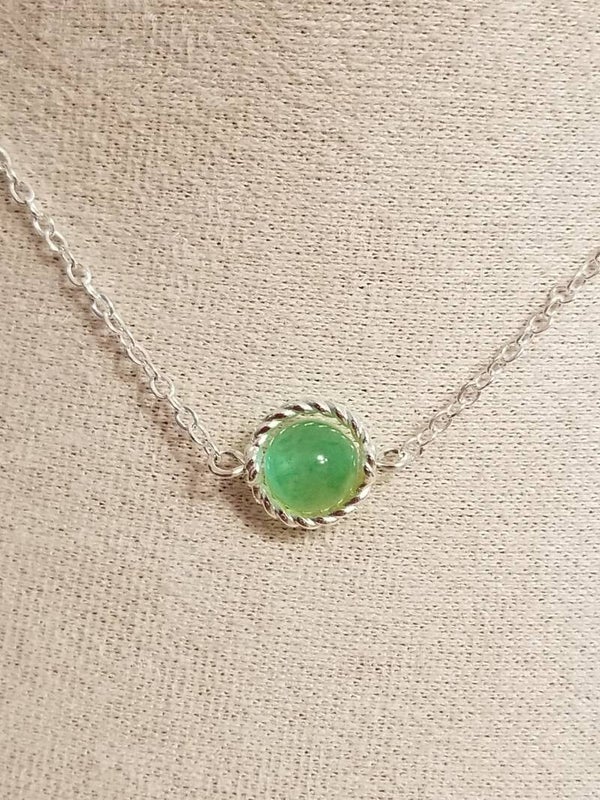 Descriptif : Collier choker en acier inoxydable argenté avec sa perle en sélénite 8mm aux reflets vert jaune. Longueur : 35 cm + 6 cm de chaine d'extension