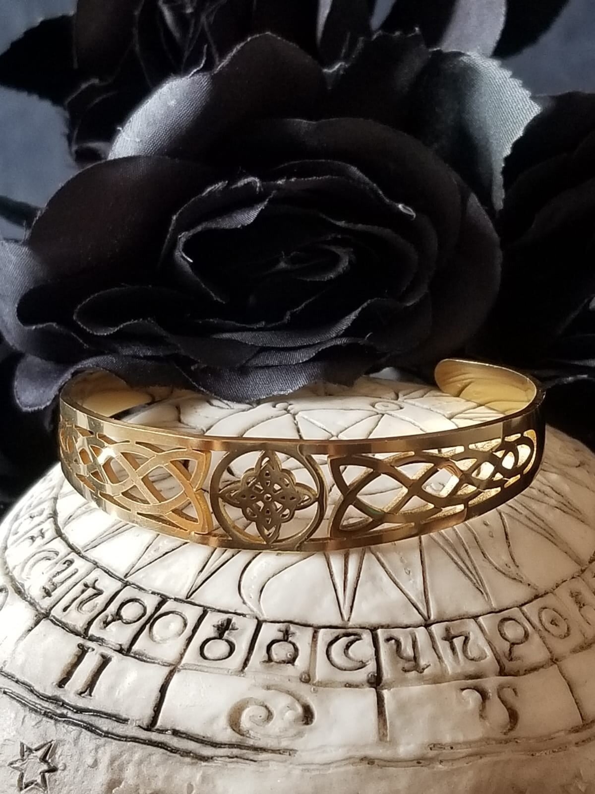 Le « nœud de sorcière » est un symbole ancien souvent associé à la magie et à la protection. C'est un motif de nœud ou d'entrelacement qui représente le pouvoir de lier ou de délier, symbolisant à la fois la protection contre les mauvais esprits et la capacité à manipuler les forces mystiques.