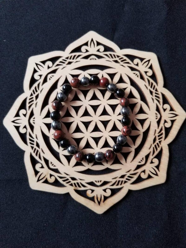 Descriptif : Plateau de rechargement en bois mandala fleur de vie, 15 cm de diamètre.