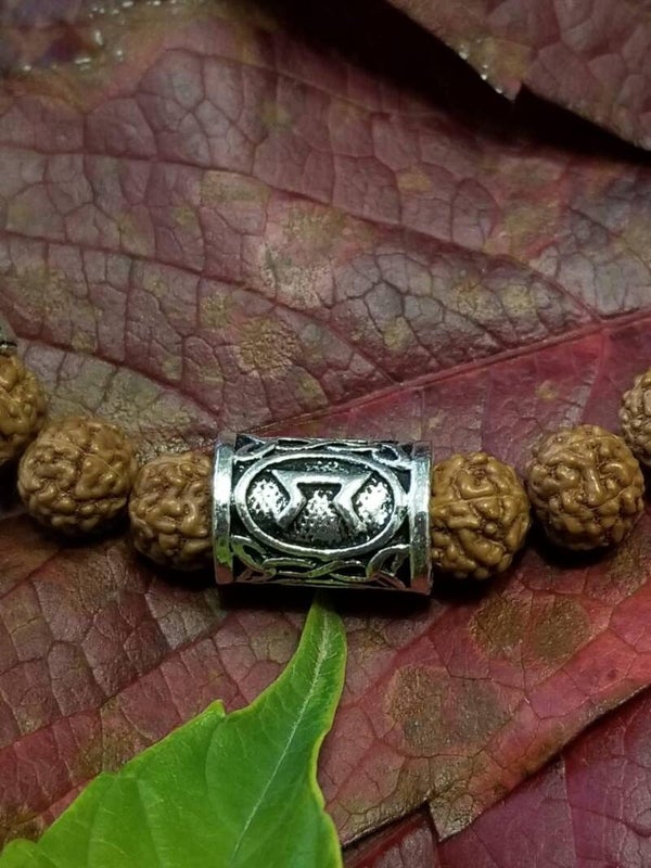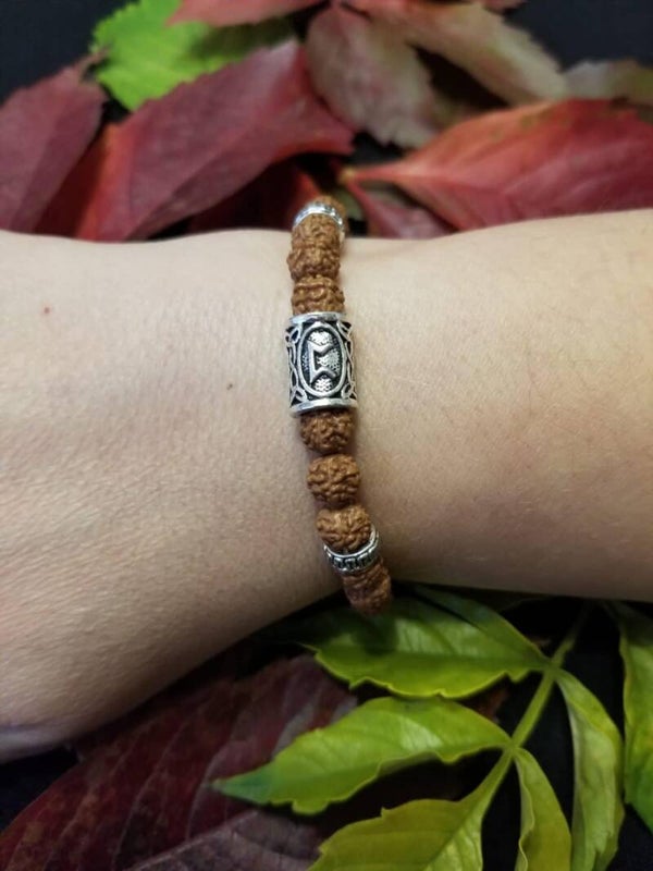 Descriptif : Bracelet en rudraksha monté sur fil macramé, grâce à son nœud coulissant il s'adapte à la plupart des poignets (diamètre intérieur de 16 à 21 cm, attention n'oubliez pas qu'il faut passer votre main).