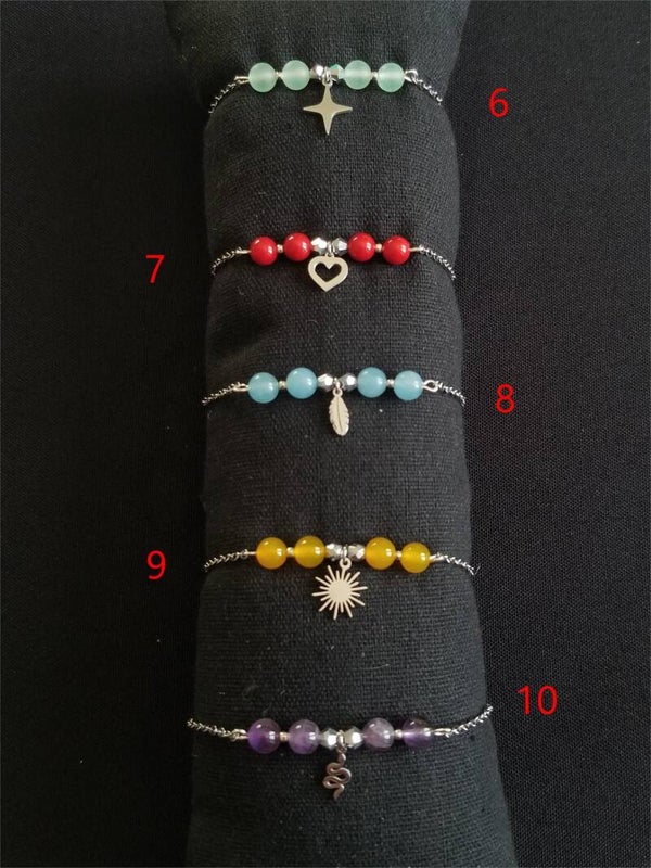 Descriptif : Bracelet chaine en pierres naturelles, perles facettées en hématite, éléments métalliques en acier inoxydable & alliage, réglable grâce à sa chaine d'extension.
