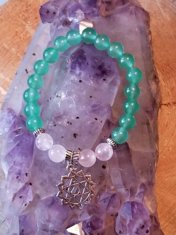 Bracelet en aventurine & quartz rose qui travaille sur le chakra du cœur – ANAHATA