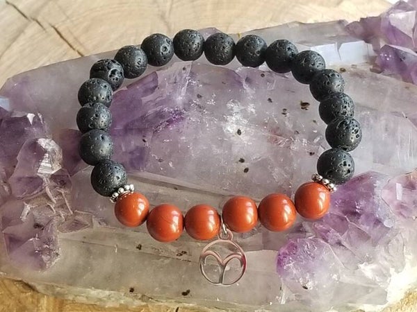 Bracelet pierre de lave - jaspe rouge pour les natifs du signe du bélier