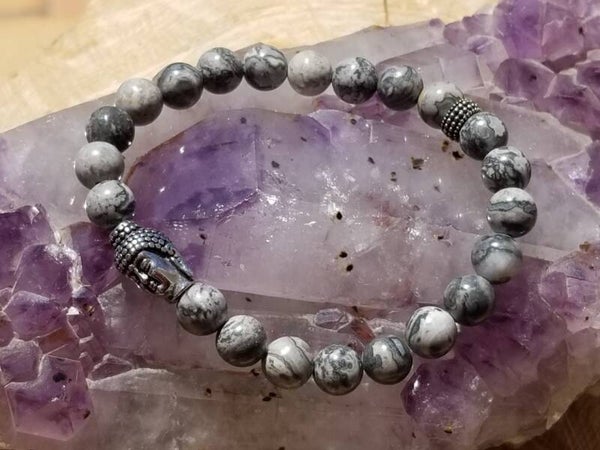 Bracelet bouddha jaspe paysage gris